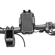 Hält Mobilgeräte sicher am Lenker. Für Geräte mit Breite von 50 bis 92 mm und Höhe von 120 bis 165 mm. Für Lenker mit Durchmesser von 22 bis 40 mm. Einfache Montage mit Spannband, kein Werkzeug erforderlich. Mobilgeräte sind einfach mit einem Griff einzuspannen oder abzunehmen. Zusätzliches Sicherungsband im Lieferumfang.